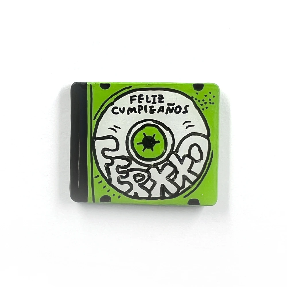Material: Base acrílica pintada a mano, con una capa de resina UV que protege toda la pieza, broche mariposa metálico.