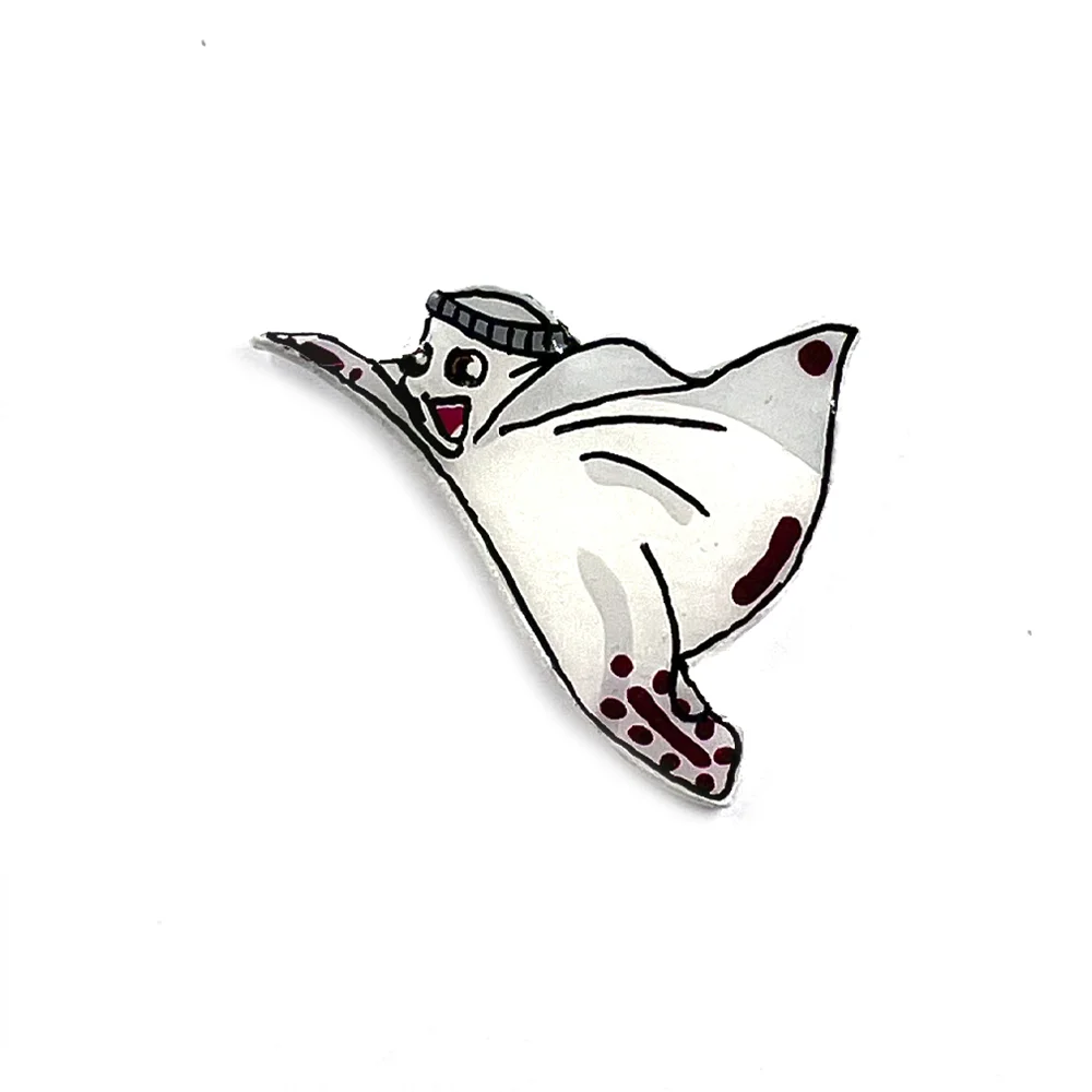 Material: Base acrílica pintada a mano, con una capa de resina UV que protege toda la pieza, broche mariposa metálico.