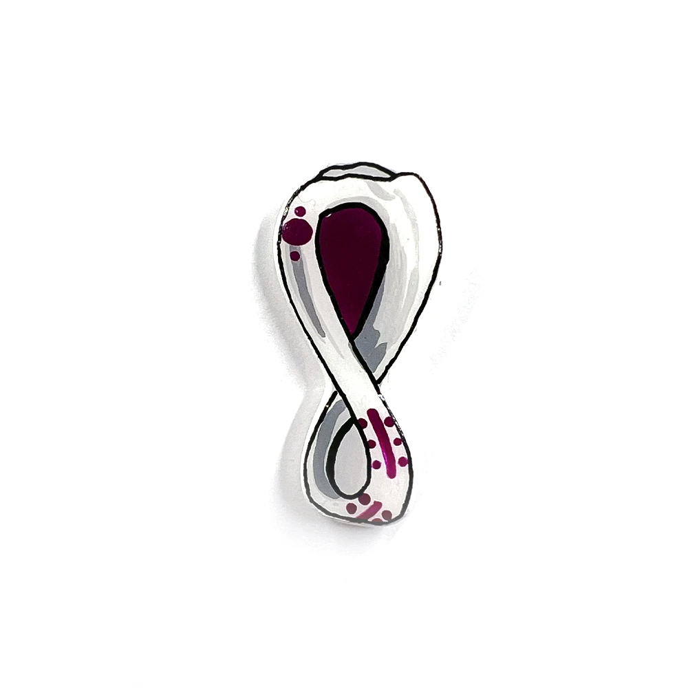 Material: Base acrílica pintada a mano, con una capa de resina UV que protege toda la pieza, broche mariposa metálico.