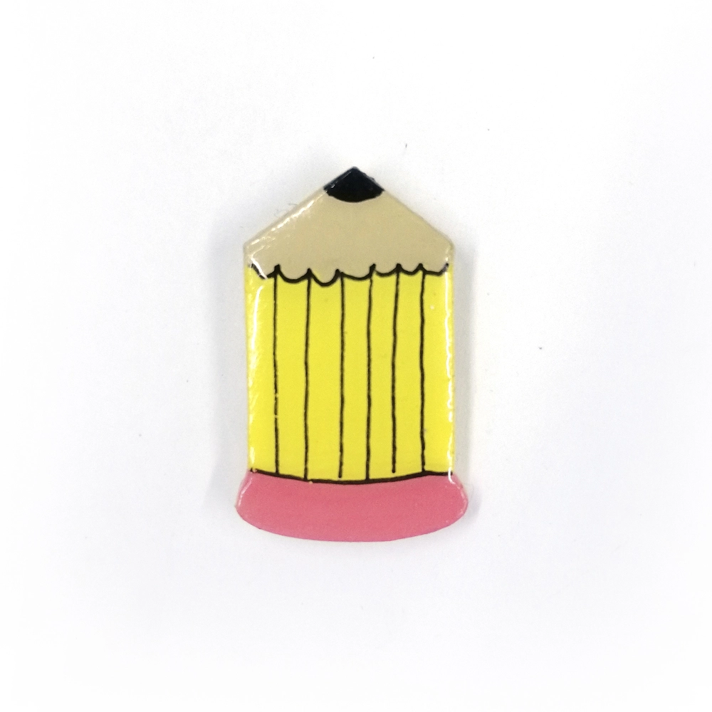 Material: Base acrílica pintada a mano, con una capa de resina que protege toda la pieza, broche mariposa metálico.